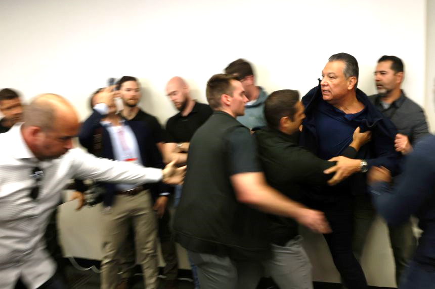 Videos circulating online show Lander standing beside the man and locking arms with him as officers approached. When agents asked Lander to step aside, he and several bystanders appeared to resist, leading to a brief scuffle. Footage shows an officer pushing Lander against a wall, placing an arm near his neck, and handcuffing him.
