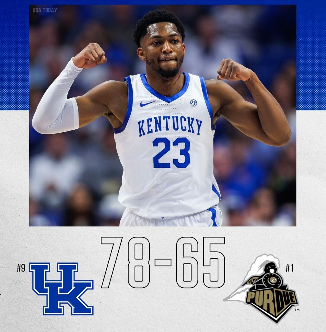 Kentucky’s defense was very strong. The team kept Purdue to 38.6% shooting and made it hard for them to score from three-point range, as Purdue only made 3 of 17 shots. Kentucky also won the rebounding battle, with 42 rebounds compared to Purdue’s 30, and scored more on fast breaks and second-chance points.