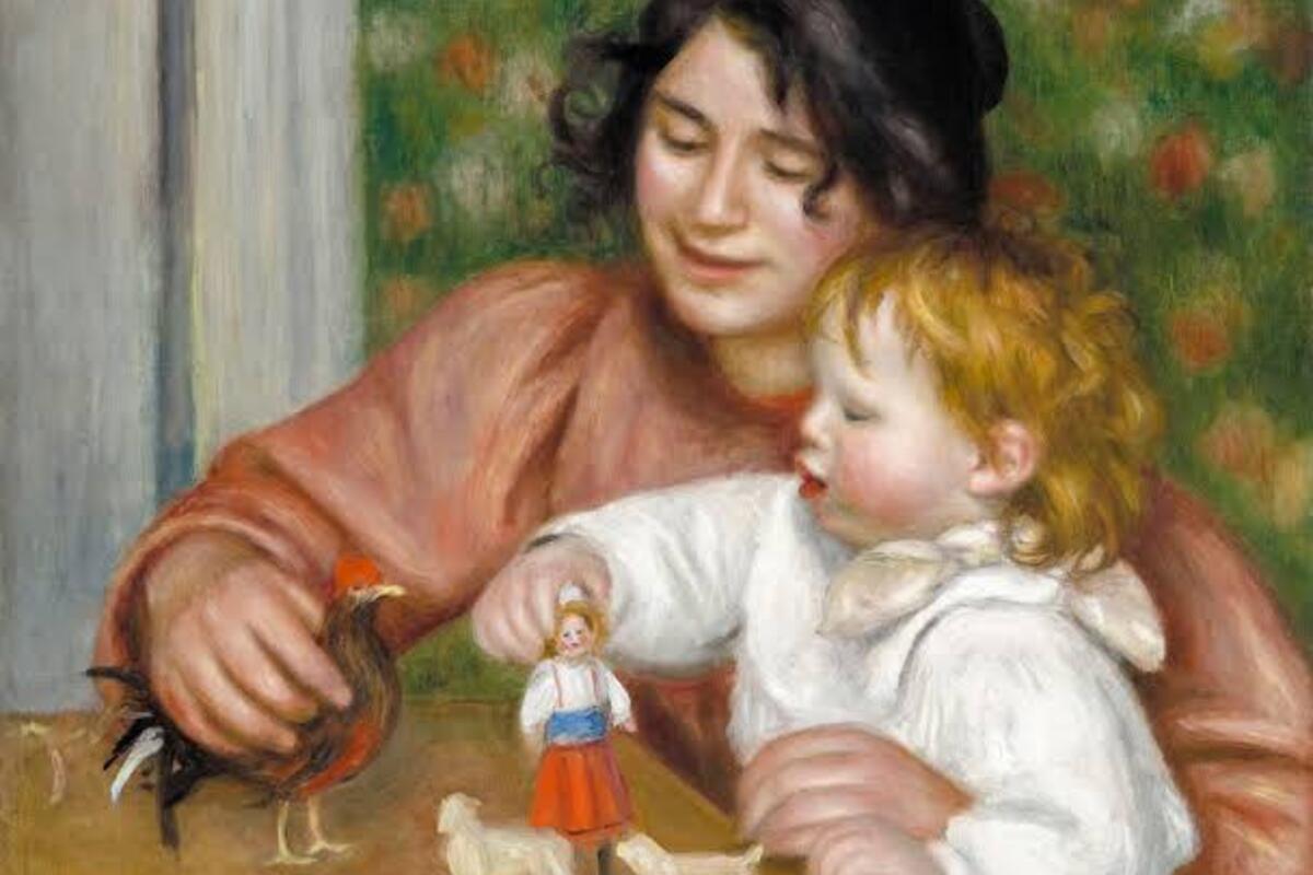 The artwork was painted around 1895 and shows Renoir’s young son, Jean Renoir, sitting next to his nursemaid, Gabrielle Renard. Gabrielle worked for the family for many years and appeared in many of Renoir’s paintings. The scene in the artwork shows a warm and gentle moment from their everyday life.